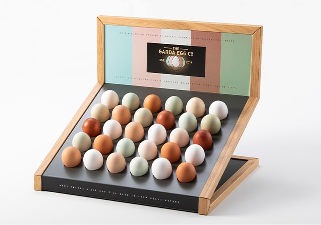 Colori, design e originalità sono i principi che hanno guidato il progetto delle confezioni e dell’espositore The Garda Egg Co. Colori che riprendono quelli delle uova, un design elegante ma fresco come le uova e un’originalità senza tempo... come le uova.