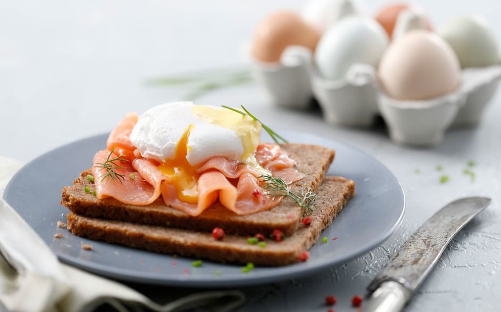 Componete il vostro piatto: mettete una fetta di pane nero tostato sul piatto, adagiatevi sopra delle fettine di salmone, l’uovo pochè e ultimate con la salsa olandese.