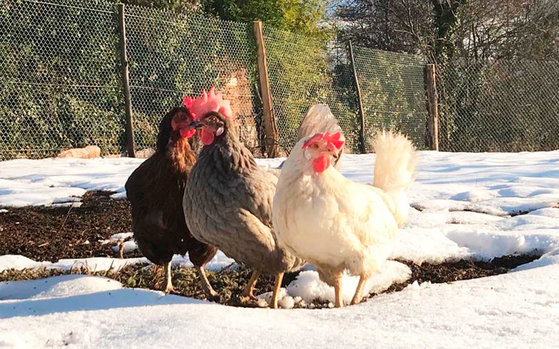 In questi ultimi giorni la neve è arrivata inaspettatamente e ha ricoperto di un manto nevoso l'azienda agricola di Federica nelle vicinanze del lago di Garda. Qui mentre alcune galline si sono riparate dal freddo, altre non si sono lasciati intimidire dalla nevicata e hanno iniziato a giocare sotto i fiocchi di neve.